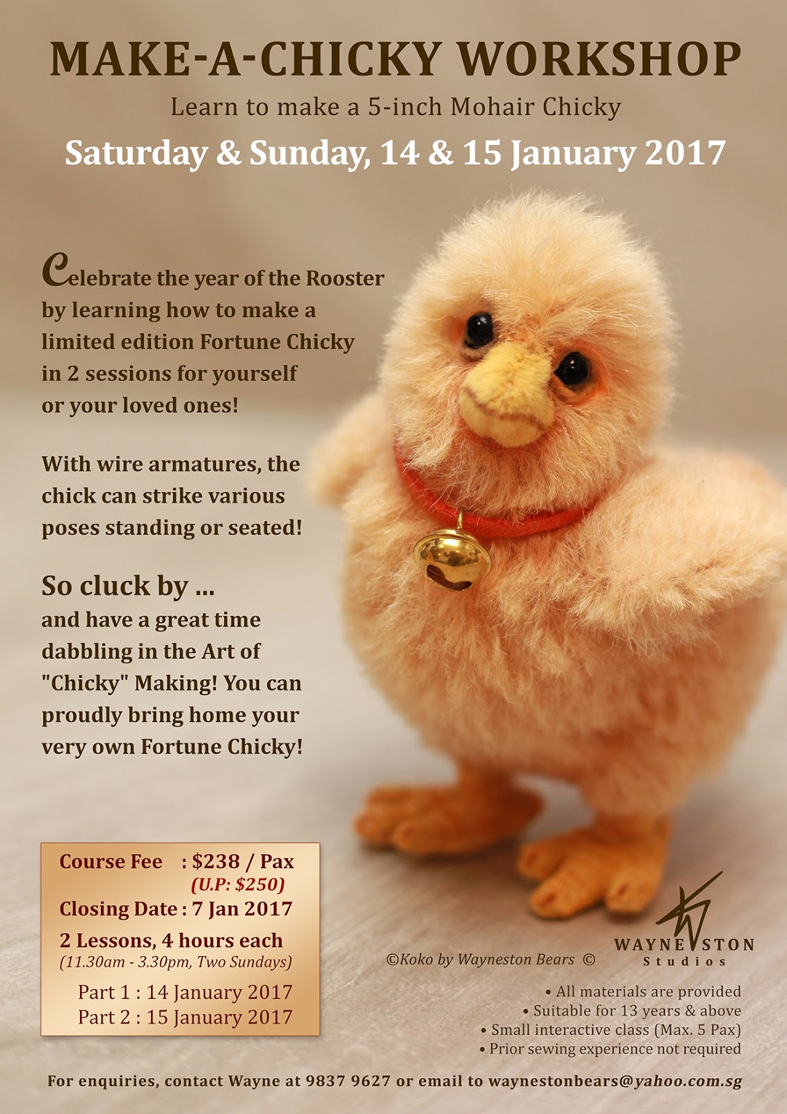 Wayneston Studios is pleased to invite Margaret Burke (Nikkel Bears) from Australia to conduct an Intermediate Bear Making Workshop here in Singapore!Β