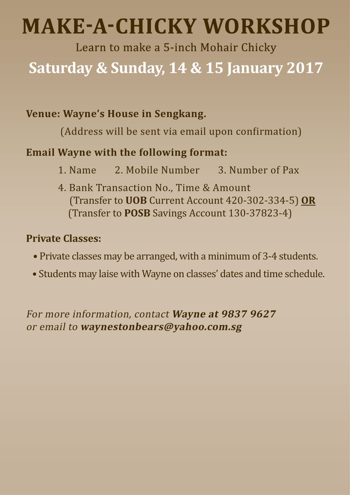 For enquiries, email Wayne at: waynestonbears@yahoo.com.sg